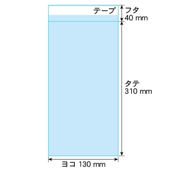 OPP袋 A4サイズ2つ折り テープ付 100枚 30ミクロン厚(標準) 130×310+40mm 透明袋 国産