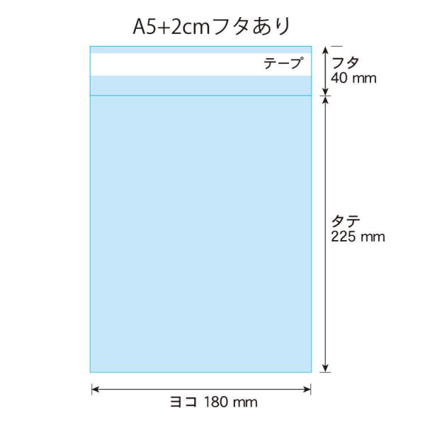 OPP袋 A5ワイド 2cm巾広 テープ付 200枚 30ミクロン厚(標準) 180×225+40mm 透明袋 国産