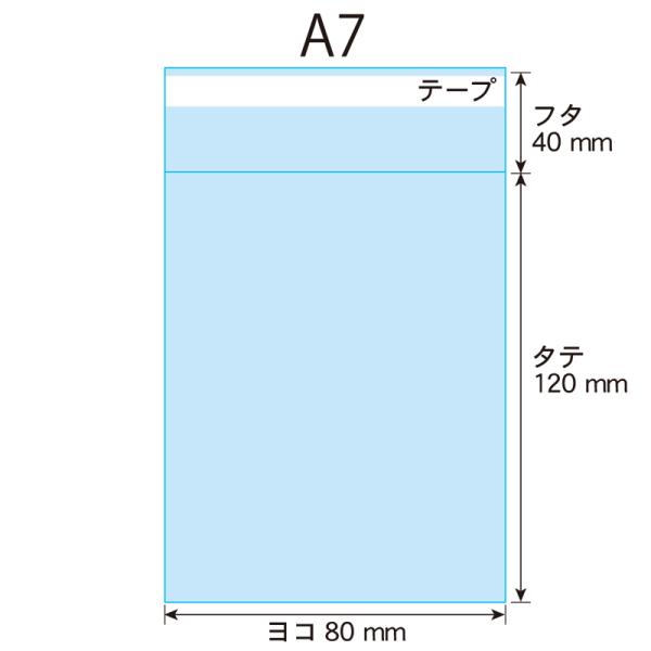 OPP袋 A7 テープ付 600枚 30ミクロン厚(標準) 80×120+40mm 透明袋 国産