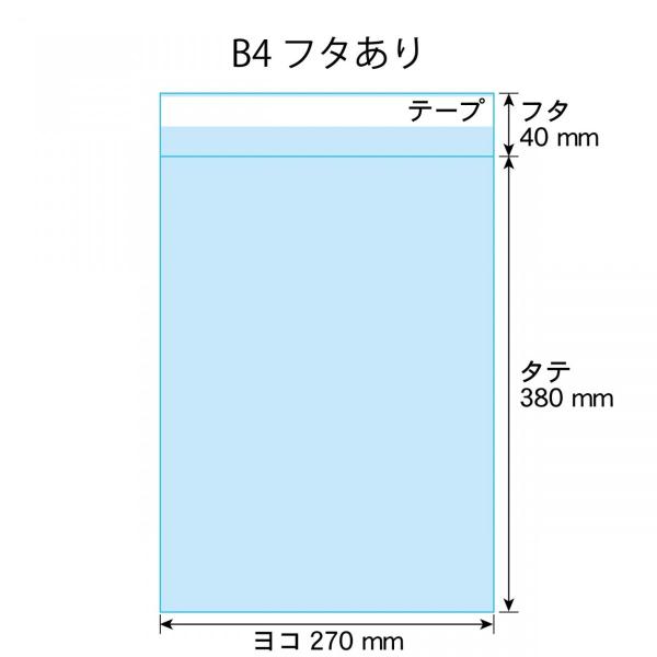 OPP袋 B4 テープ付 100枚 30ミクロン厚(標準) 270×380+40mm 透明袋 国産 二つ折り発送
