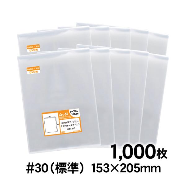 OPP袋 DVDトール用 テープなし 1000枚 30ミクロン厚(標準) 153×205mm 透明袋 国産