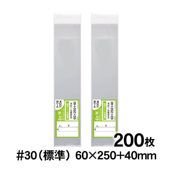 OPP袋 細長いスリム袋 箸/扇子用 テープ付 200枚 30ミクロン厚(標準) 60×250+40mm 透明袋 国産