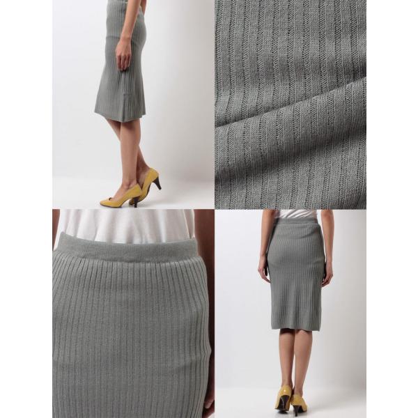 細めリブ編みで脚長効果のあるシンプルなタイトスカート