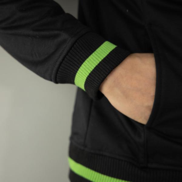 ●ネック、袖、裾のリブにライン柄を使用しスポーティーさをプラス