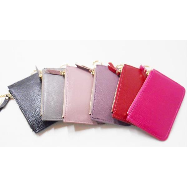 デザイナーMiss Shokuがデザインした牛革(一部合皮)フラグメントケースカード3枚とコイン、チェーンはキーにつけたり、バッグにつけて紛失防止にもできます。ギフトにもおススメですサイズ(約):縦 9cm 横 14.5cmメイン素材:牛革