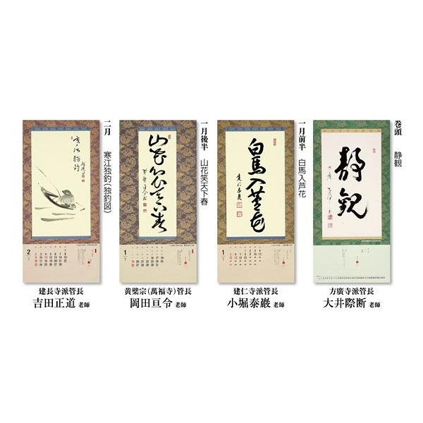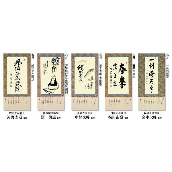 このカレンダーは日本禅宗の中の臨済宗・黄檗宗の現代管長・師家の筆による墨蹟を集めた大変価値あるものです。実践と体験によって伝えられる禅語の数々を各月の和紙に再現しています。