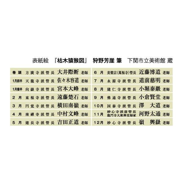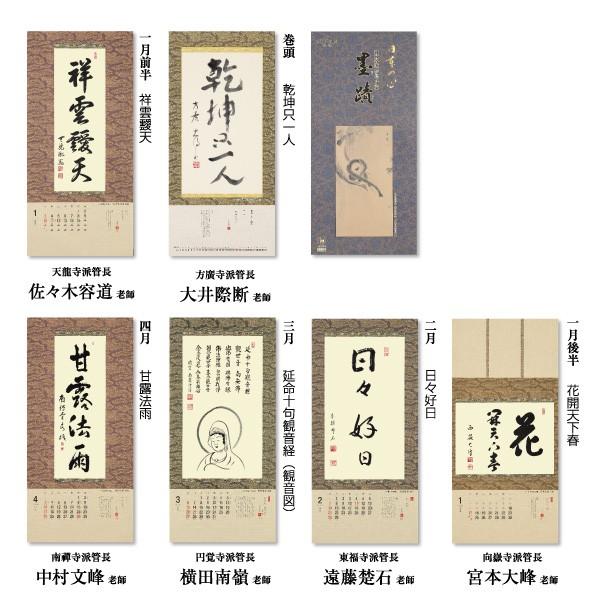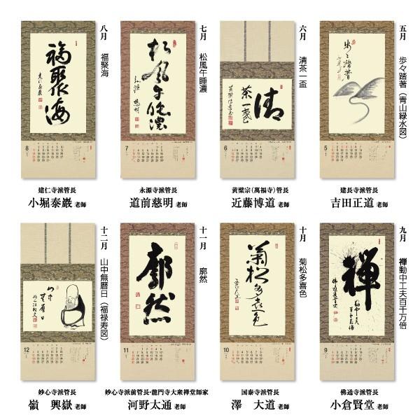 このカレンダーは日本禅宗の中の臨済宗・黄檗宗の現代管長・師家の筆による墨蹟を集めた大変価値あるものです。実践と体験によって伝えられる禅語の数々を各月の和紙に再現しています。
