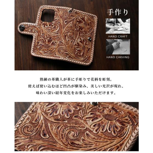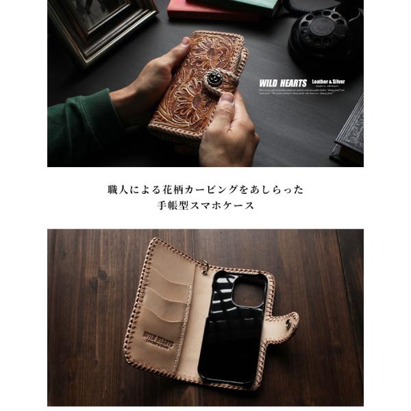 ワイルドハーツ スマホケース 手帳型 iPhone カービング 携帯 アイフォン ケース 16 15 pro max plus 本革 レザー ヌメ革 牛革 編み込み WILD HEARTS ip3061