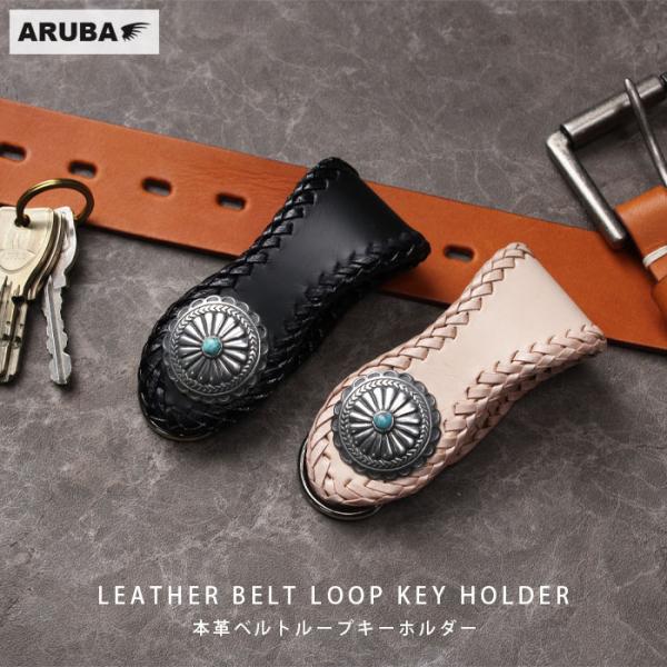 本革 ベルトループキーホルダー キーホルダー キーリング 牛革 レザー 革 革小物 編み込み コンチョ 鍵 キー ヌメ おしゃれ かっこいい アルバ aruba bk3313k4