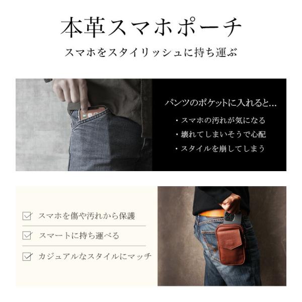 本革 ウエストポーチ ベルトポーチ ヒップポーチ スマホポーチ スマホケース ヒップバッグ ポーチ レザー 革 iPhone 12 13 pro max メンズ レディース wp412b45