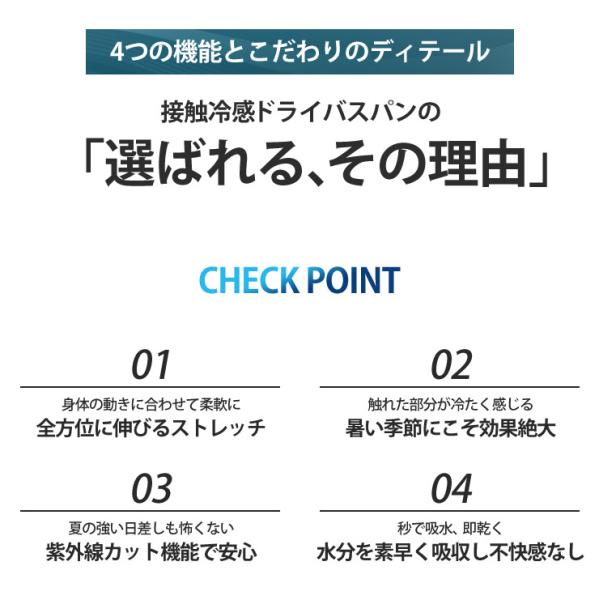 接触冷感、吸水速乾、UV対策、ストレッチ機能など暑い夏でも快適に過ごせる機能を盛り込んでいます。肌触りが涼しくさらに、吸水速乾性に優れているので汗や水分を素早く吸収して素肌をドライに保ち衛生面にも効果を発揮します。軽量かつストレッチ性に富んでおり、アクティブな活動に最適。UV対策も施されているので、屋外での活動中にも安心です。