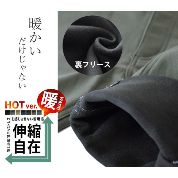 チノパン メンズ 伸縮自在ストレッチ 暖 裏フリース