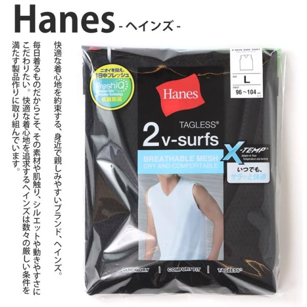 Hanes ヘインズ 2枚組 Vネック メッシュ ノースリーブ サーフシャツ 抗菌防臭 エチケット アンダーシャツ インナー ドライ 臭いを抑える セール 爆買