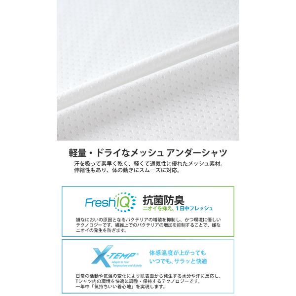 ソフトな風合いと通気性が特長で、汗を素早く拡散する吸汗速乾性に優れているので汗を素早く拡散し着用時のベタ付きを軽減。型くずれやしわになりにくく、体の動きにスムーズに対応する伸縮性も兼ね備えています。首元にネームデザインをプリントするTAGLESS〓(タグレス)仕様で襟ネームの肌当たりを解消。Hanes〓独自の「X-TEMP〓(エックステンプ)」テクノロジーや、ニオイの発生を抑制する「Fresh IQ(フレッシュ アイキュー)」加工により1日中快適です。「X-TEMP〓」テクノロジーは、活動や気温の状況で変化する体感温度によって発生した水分や汗に反応し、その拡散をコントロールすることでTシャツ内の環境を快適に保持するテクノロジー。 1年中「気持ちいい着心地」を実現します。