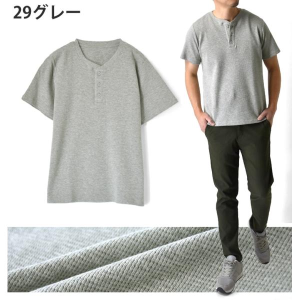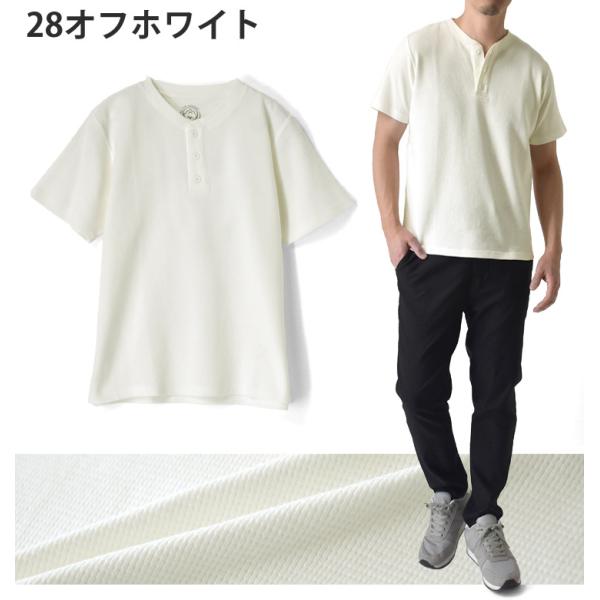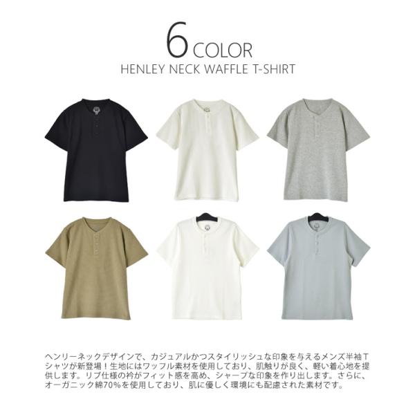 半袖Tシャツ メンズ ヘンリーネック OEKO-TEX ワッフル サーマル リブ オーガニック綿70% セール 爆買