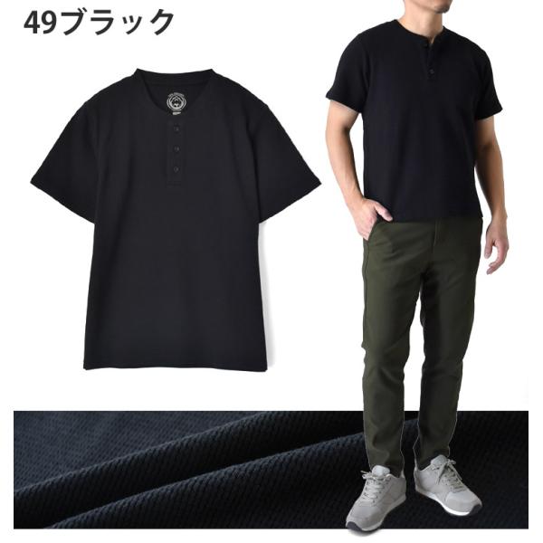 半袖Tシャツ メンズ ヘンリーネック OEKO-TEX ワッフル サーマル