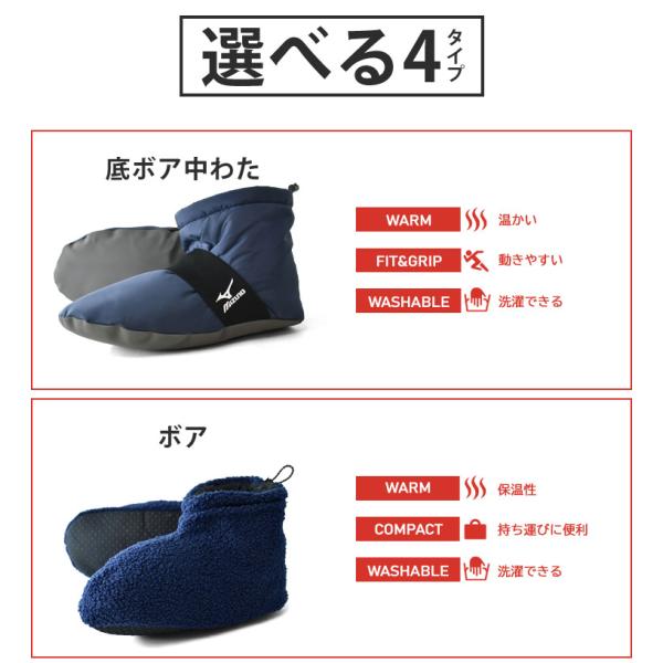 ミズノ MIZUNO ルームシューズ ロング丈 メンズ レディース 中わた ボア 撥水 軽量 暖か スリッパ テントシューズ キャンプ 洗濯できる セール 爆買