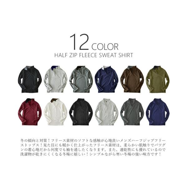 冬の傾向と対策!フリース素材のソフトな感触が心地良いメンズハーフジップフリーストップス!見た目にも暖かく仕上がったフリース素材は、柔らかい肌触りでバツグンの着心地だから何度でも袖を通したくなります。また、速乾性にも優れているので洗濯物が乾きにくくなる冬場に嬉しい!シンプルながら寒い冬場の強い味方です!