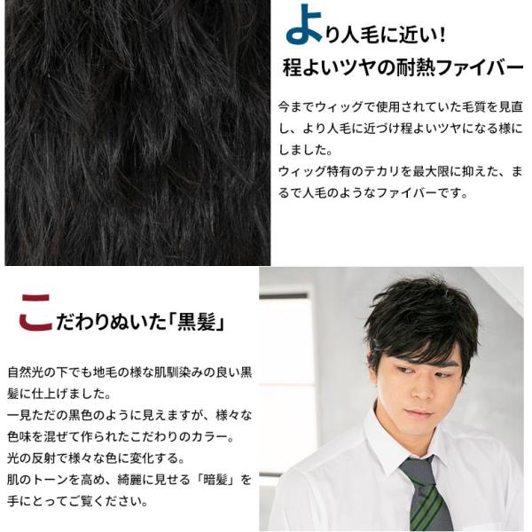 メンズウィッグ 605 男性用かつら 黒 ワイルドショート ブラック アノザラメ 黒髪 レイヤー 段カット 男性 カツラ FW-M01-BL 送料無料