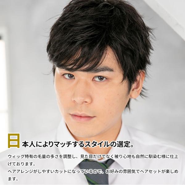 メンズウィッグ 男性用かつら フルウィッグ かつら「センターパートショート」 センター分け 真ん中分け