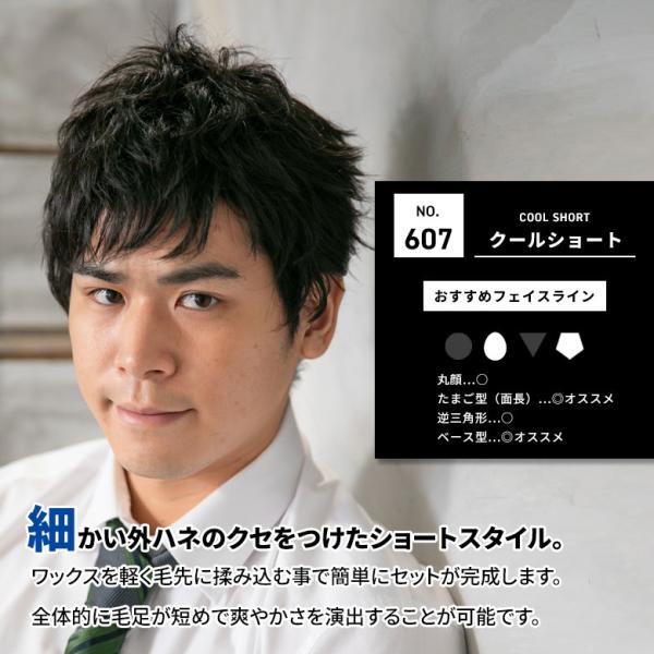 メンズウィッグ 607 ウィッグ メンズ 男性用かつら 黒 クールショート ブラック アノザラメ 黒髪 男性 カツラ FW-M03-BL 送料無料