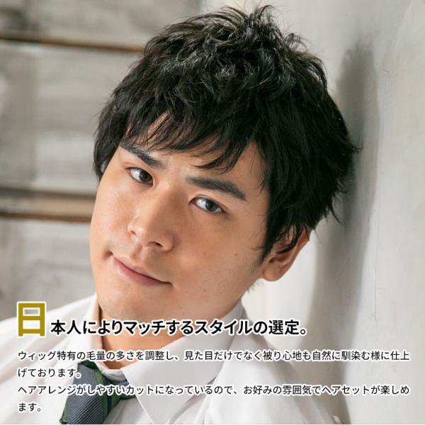 メンズウィッグ 男性用かつら フルウィッグ かつら「センターパートショート」 センター分け 真ん中分け