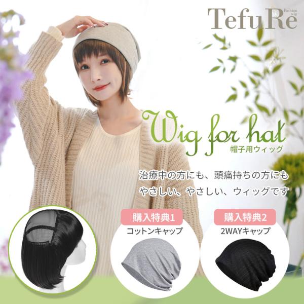 【帽子2個付き】 ウィッグ付き 帽子 帽子付きウィッグショート 医療用ウィッグ テフリ 富士達 医療用 脱毛症 抜毛症