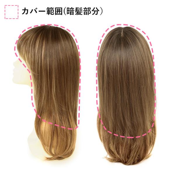 ヘアピース耐熱 プレミアム白髪隠しウィッグ 広範囲ふんわりロングタイプ ウイッグ ST-010 薄毛隠し カバーピース 部分手植え シルクスキン