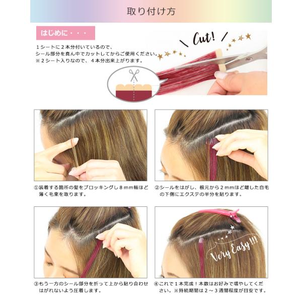 地毛をシールで直接はさむだけで、簡単に取り付けられるエクステです。