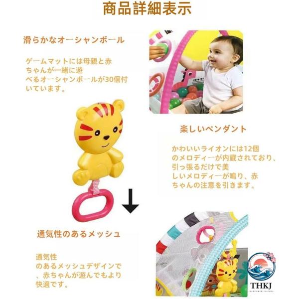 ベビープレイマット ベビージム30 個のボールを備えた 5-in-1 ゲームマット (音楽機能)【0ヶ月~】知育玩具 室内遊具 全身運動 レインボー育児 ベビージム