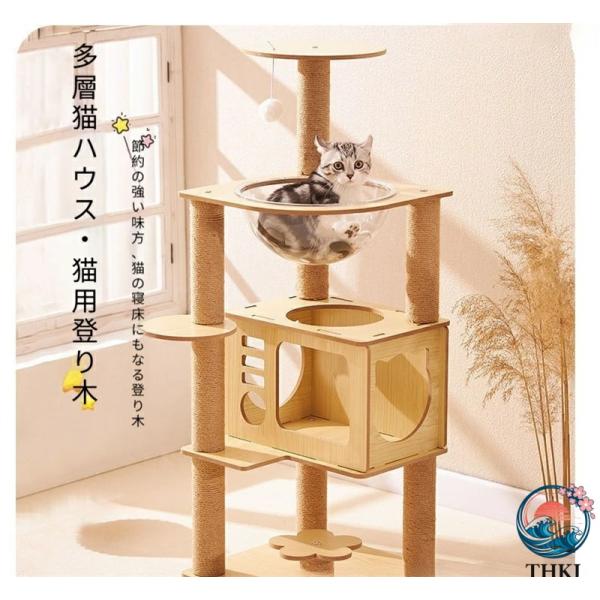 木製キャットタワー キャットタワー 猫タワー ミニキャットタワー 宇宙船 子猫と大型猫 多頭飼い キャットタワー据え置き 省スペース 登りやすい おもちゃ 見晴