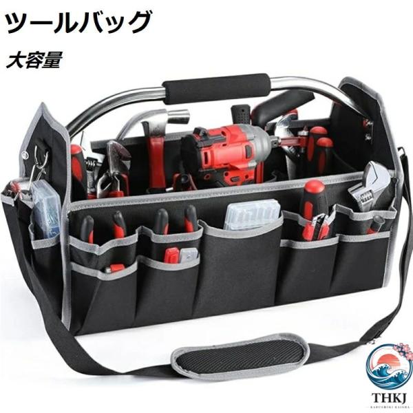 工具バッグ ツールバッグ 工具袋 工具入れ 工具 収納 大容量 工具カバン 折り畳み 肩掛けベルト付き ポケット多い 丈夫 オックスフォード 撥水処理 作業用 アウ