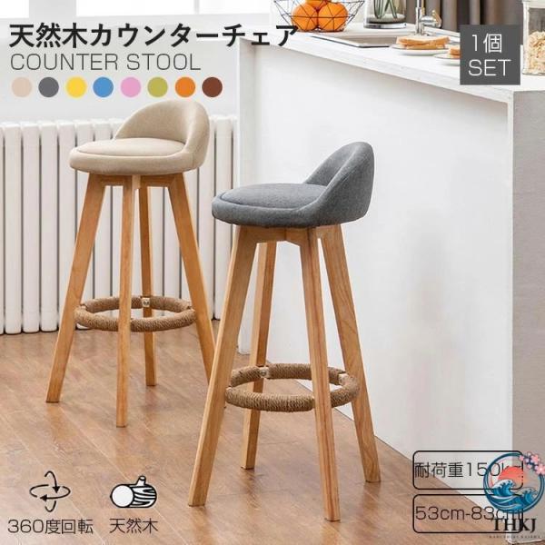 カウンターチェア 木製 360度回転 足置き付き ウンタカー椅子 キッチン椅子 天然木 ハイスツール 居酒屋 軽量 カフェ バー椅子 ファブリック素材 生地