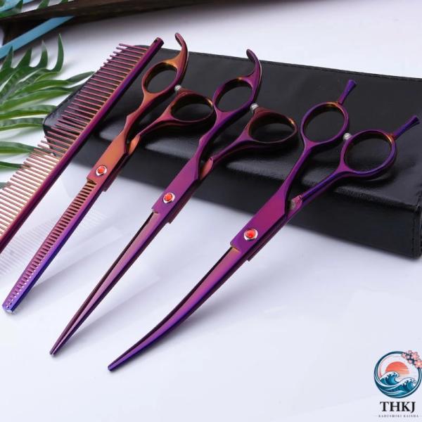 高級感 プロ トリミング シザー ステンレス製 ストレートとカーブ ハサミ セニングシザー チャンカーシザー コーム 猫犬美容 ペット用はさみ
