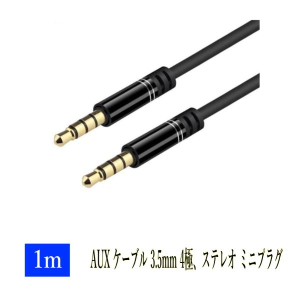 AUX ケーブル 3.5mm 4極、ステレオ ミニプラグ 1m iPhone / iPod スマートフォンオーディオ 金メッキ端子