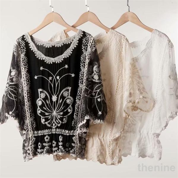 ブラウス シャツ トップス レディース 春 夏 刺繍 ドルマンスリーブ ゆったり 新作 おしゃれ レース レディースファション