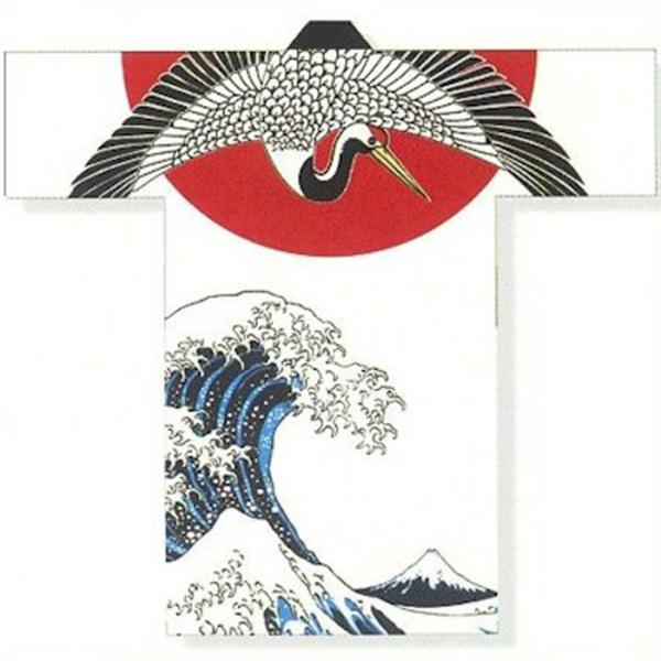 法被 ロング 長半纏 長い 白 鶴 波 はっぴ ハッピ 祭 (m調6459) よさこい まつり 祭り 大人 袢纏 お取り寄せ商品