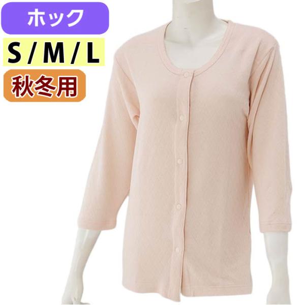 介護 肌着 女性用 前開き シャツ 8分袖 プラスチックホック式 キルト 吸湿発熱 (on475899) レディース 婦人 下着 秋冬用 介護用