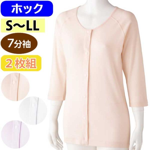 介護 肌着 女性用 前開き 7分袖 ホック シャツ 2枚組 (cf89868) 婦人 レディース 下着 介護用 ak13 25aw