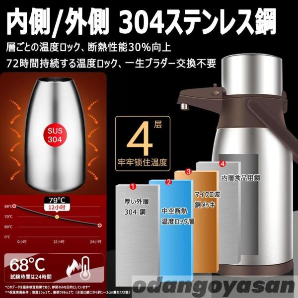 保温ポット 魔法瓶 エアーポット 大容量 おしゃれ 空圧式 プッシュ式 卓上ポット 保温 保冷 ステンレスエアーポット サーモポット 真空断熱 保温力最強 72時間の