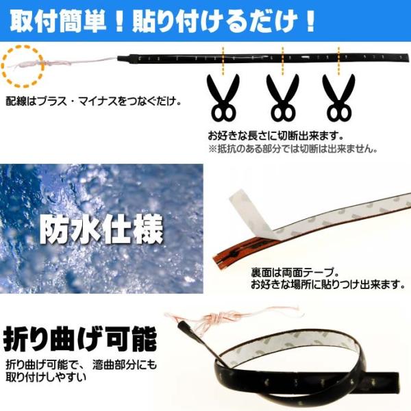 LEDテープライト15連30cm 正面発光LEDテープ ホワイト/ブルー/アンバー/レッド/グリーン 白/黒ベース選べるLEDテープ1本 防水切断可能なLEDテープ sale