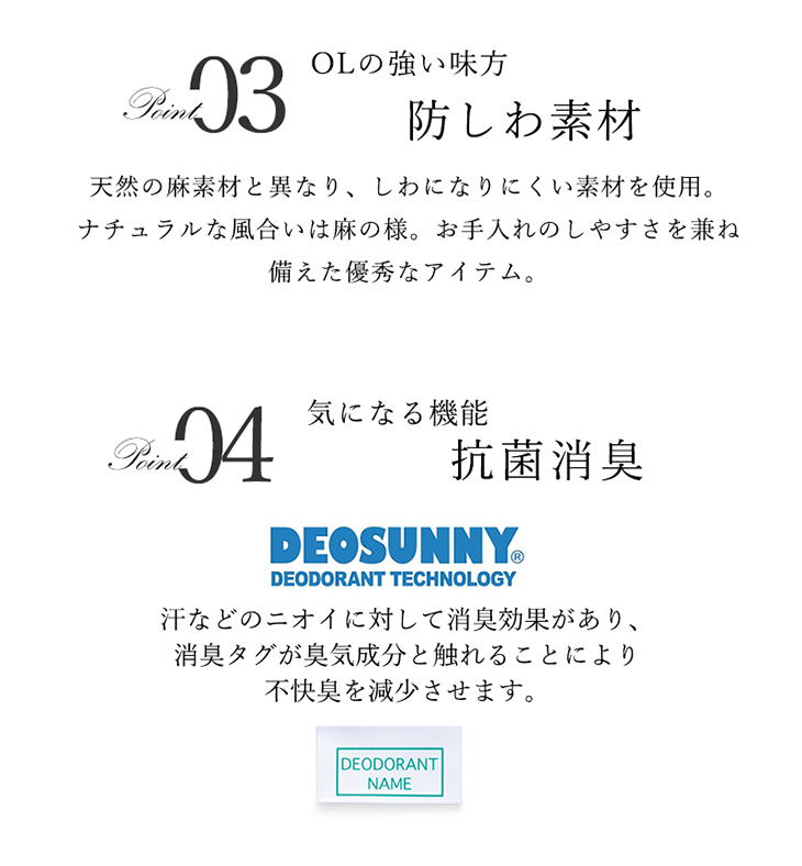 麻調で清涼感ある素材で暑い夏もストレスフリー。