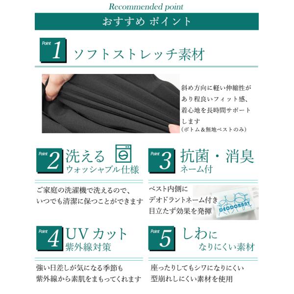 オフィスでの企業制服(ユニフォーム)として使える、ビジネスシーンに欠かせない事務服対応ベストスーツ。