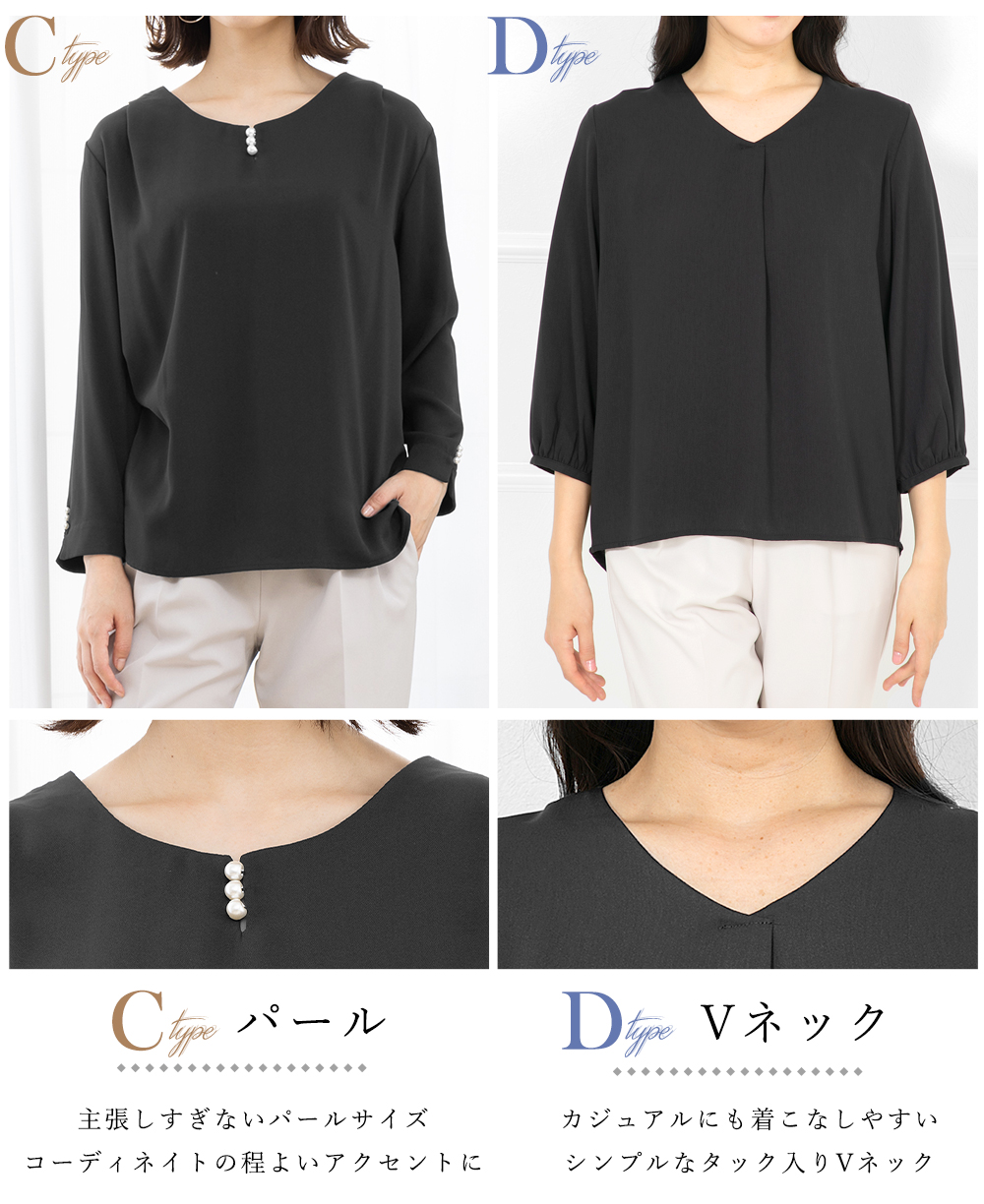 メール便送料無料 ブラウス スーツ インナー カットソー レディース ジョーゼット生地 トップス 八分袖 大きいサイズ 宅配便あすつく [M便 1/2]