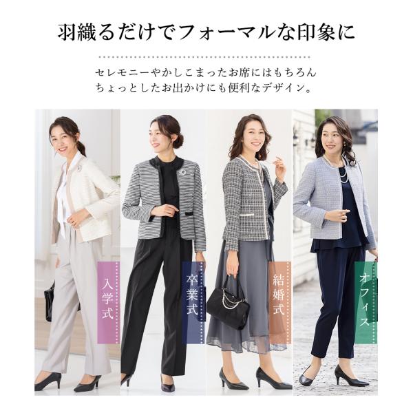 ジャケット レディース ツイード 卒業式 卒園式 入学式 服装 母親 ママ 七五三 結婚式 通勤 ビジネス フォーマル 30代 40代 50代