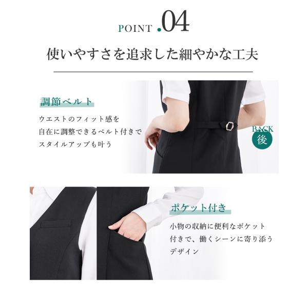 オフィスでの企業制服(ユニフォーム)として使える、ビジネスシーンに便利な事務服対応ベストワンピース。