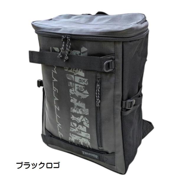 THRASHERの大きなロゴが目を引くBOX型リュック
