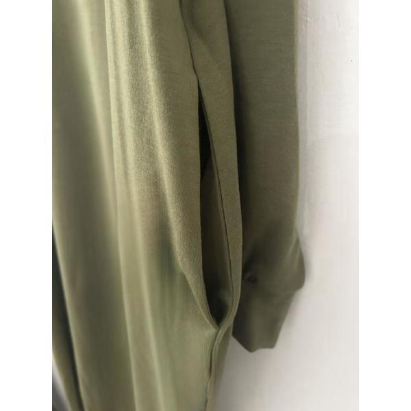 ワンピース 秋 長袖 フード付きワンピース バイカラー スリット パフスリーブ 大人可愛い 体型カバー きれいめ 膝下丈 春秋ワンピ ゆったり オフィスカジュアル