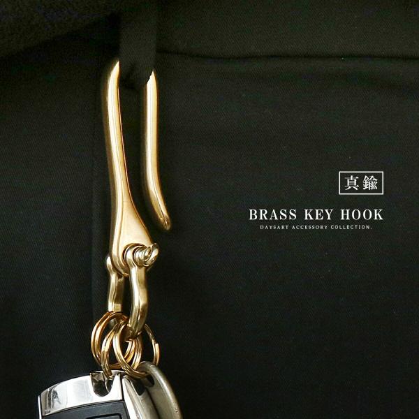 キーフック メンズ レディース 真鍮 ブラス キーホルダー シャックル キーリング付き ベルトループ スタイリッシュ アンティーク調