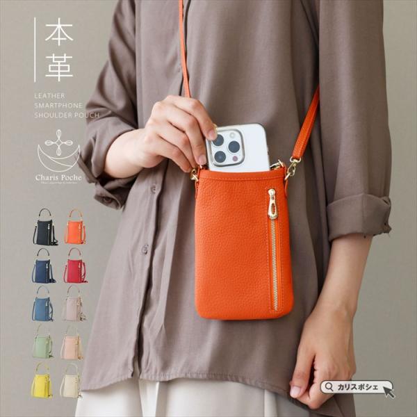 スマホショルダー スマホポーチ ストラップ レザー レディース ショルダーバッグ シュリンクレザー ICカード